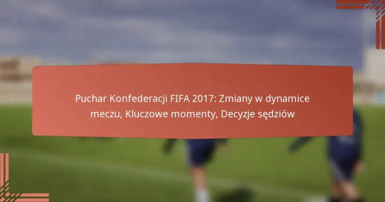 Puchar Konfederacji FIFA 2017 pokazał różnorodność wniosków taktycznych, które wpłynęły na występy drużyn i wyniki meczów. Kluczowe strategie obejmowały zastosowanie konkretnych formacji, strategiczne plany gry oraz ogólny wpływ tych taktyk na wyniki.